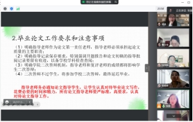 其次,关于毕业论文,张丽副主任重申了“指导老师是论文第一责任老师”的原则以及毕业论文对我校本科教学工作合格评估的重要性,再次明确了指导老师的职责,对全系老师的毕业论文指导工作的过程规范性提出了严格的要求,以确保毕业论文指导工作能保质保量地完成。