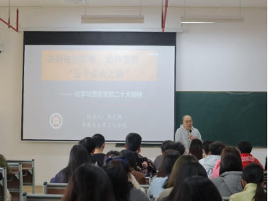 为了营造良好的马克思主义校园学习氛围,坚定马克思主义理想信念,推动马克思主义中国化进程发展,培育新时代社会主义接班人。3月3日上午9时,管理学院在四会校区8号楼406教室举办伟德体育“华商思想论坛”系列讲座——如何理解必须倍加珍惜,始终坚持“五个必由之路”,特邀马克思主义学院程炎明副院长为管理学院同学进行专题辅导报告。