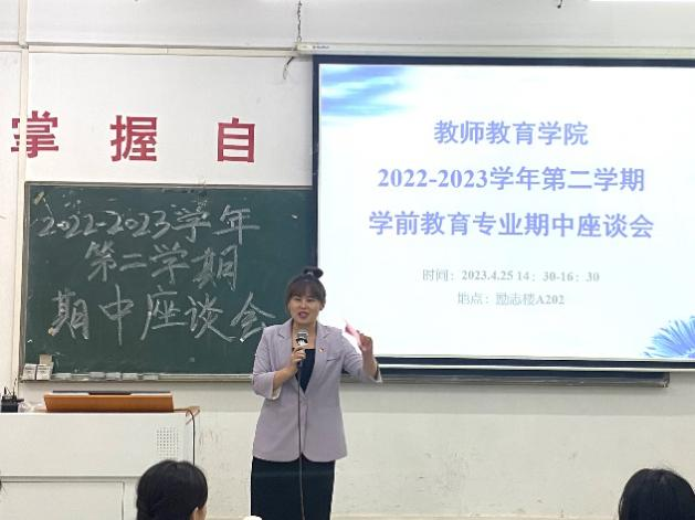 为深入了解开学以来教师教育学院学生在校学习、生活情况,搭建师生紧密联系的桥梁,教师教育学院于教学周第十周分别在增城校区和四会校区开展2022-2023学年第二学期期中座谈会。座谈会于4月25日分别在励志楼A202和8号楼108召开,学院领导、系部教师代表、辅导员代表和各班级学生代表参加。各班学委以及学生代表在会上提出在学习生活上遇到的各种问题。