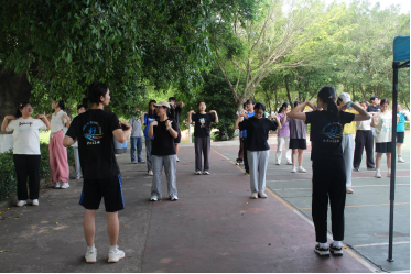 同学们跟随着跑步协会工作人员,有序的做着热身运动,从他们脸上洋溢着的笑容中,不妨可以看出其心中为爱奉献的热情。