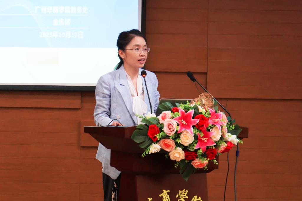 教务处副处长金伟娇主要从教学的主要环节切入,围绕课堂教学、考试命题、指导学生、教师教研能力提升、教师教学业绩考核、教学相关的奖励政策等六个方面进行详细介绍,旨在帮助新教师了解我校的教育教学规章制度、教学奖励和政策,希望老师们规范教师教学行为,提升教学教研能力,共同做好我校的教学工作,不断提高人才培养质量。