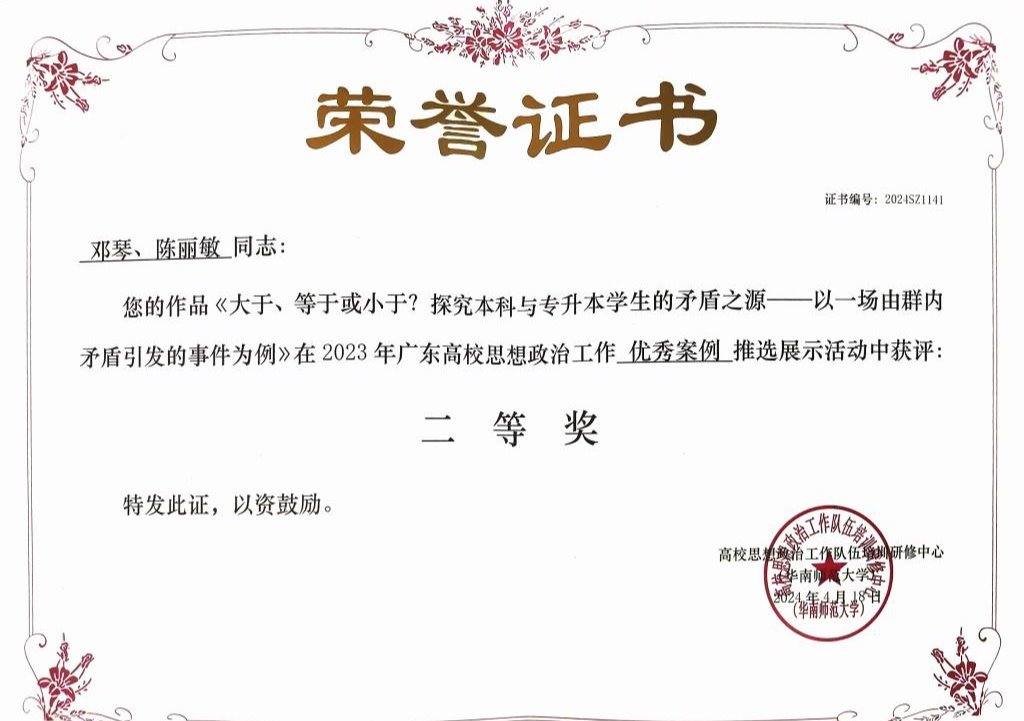 《大于、等于或小于?探究本科与专升本学生的矛盾之源——以一场由群内矛盾引发的事件为例》 | 二等奖 |