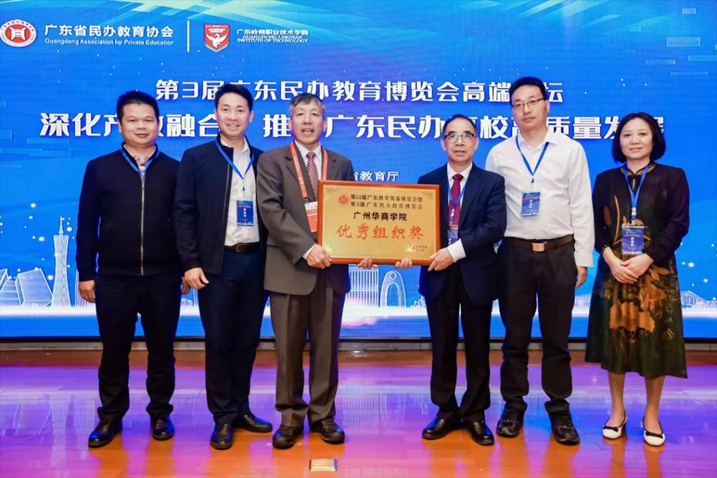 期间,在第3届广东民办教育博览会高端论坛上,我校荣获“优秀组织奖”荣誉称号,学校代表出席论坛会并上台领奖。
