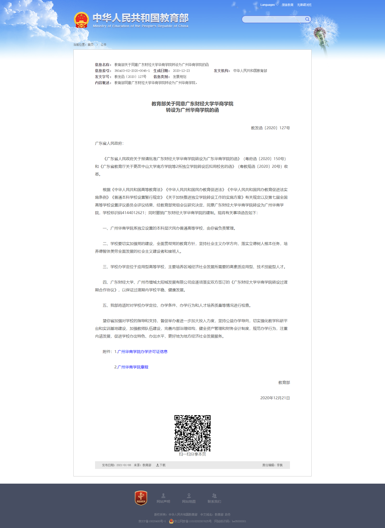 新章程经登记管理机关登记后,审批机关向社会公告生效,学校同时在网上公布。